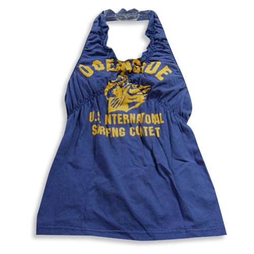 Gold Rush - Girl Halter Tops, Navy, flying elastic plate holder, elastic empire waist, surfing screen OCEANSIDE Print, 100% Cotton, # 17313